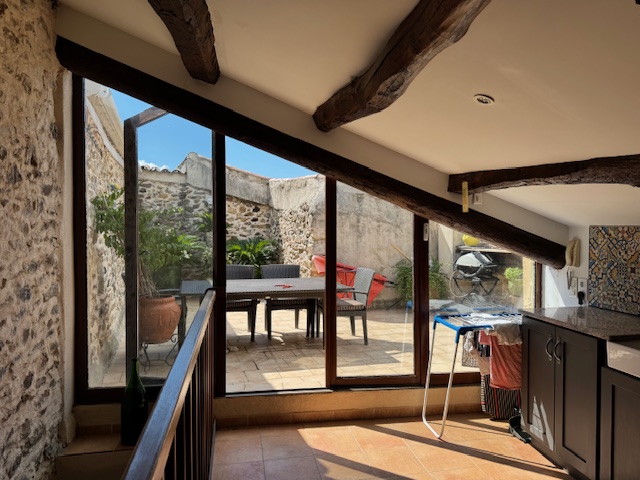 Nytt pris! (FPU299) Renoverat byhus med takterrass och härlig utsikt, lugnt läge i en by med gångavstånd till vinbar, restaurang, pizzeria, bageri och fem minuter till Magalas med tågstation, torgmarknad mm. Här finns en boyta...