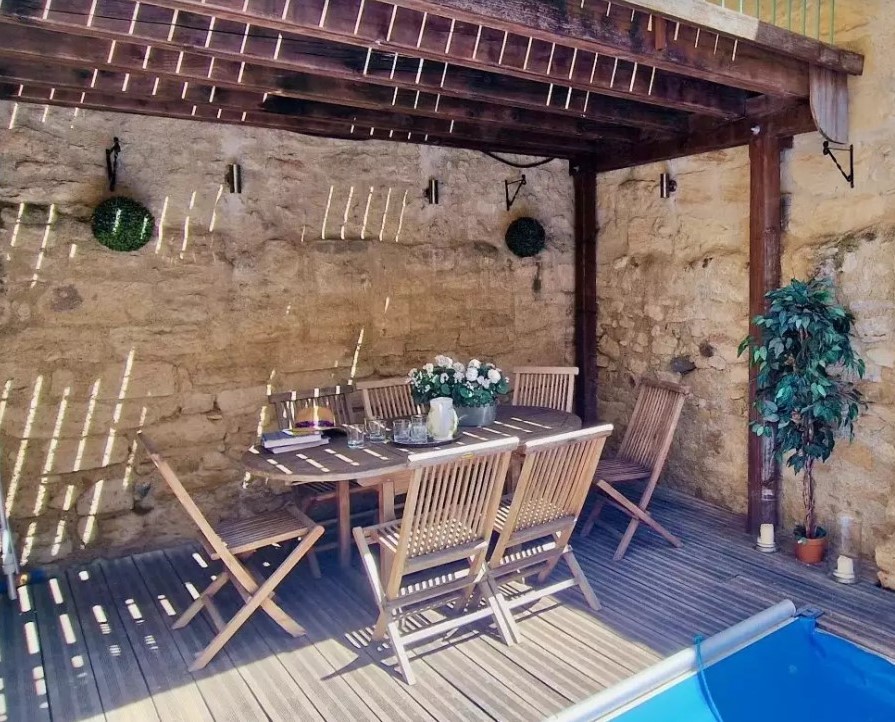 Nytt pris! (KEP269) Charmigt stenhus med terrass, mitt i den mysiga byn Pouzolles. Boytan är på 135 kvm och bredvid kök/vardagsrum finns en terrass med utsikt mot byns kyrka. Du har ett vardagsrum /arbetsrum på 16 kvm med kamin...