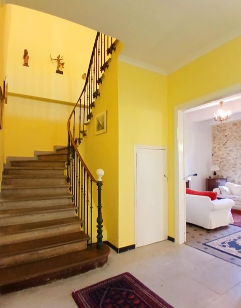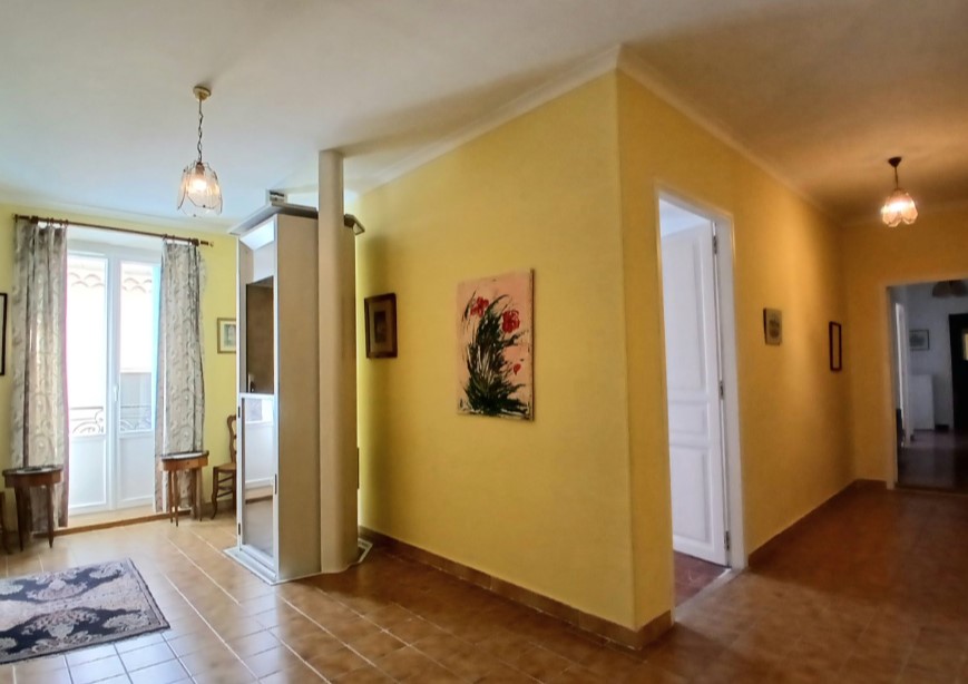 Trappan upp är i original och du kommer upp till en hall på 21 kvm. Det finns även hiss.