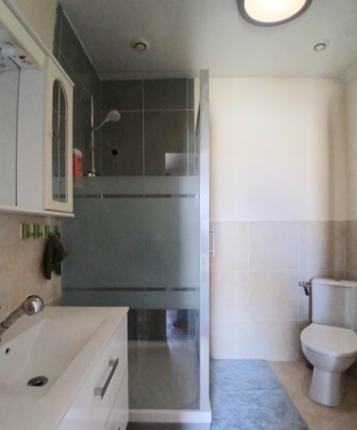 Därefter har du en hall på 3 kvm och badrum med dusch, handfat och wc och genomgång till garaget på 80 kvm.