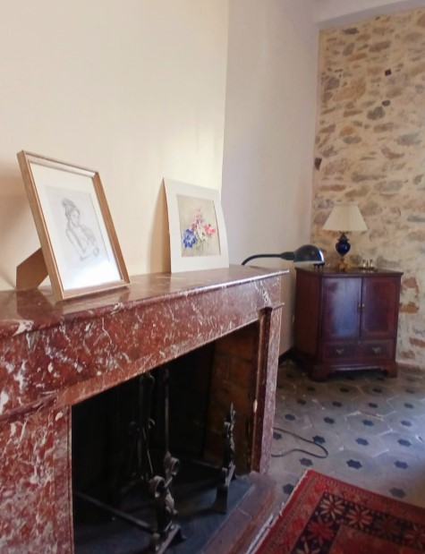 Vidare har du ett vardagsrum och matsal på 48 kvm med öppen spis av marmor, originalgolv och två dörrar direkt ut till trädgården.