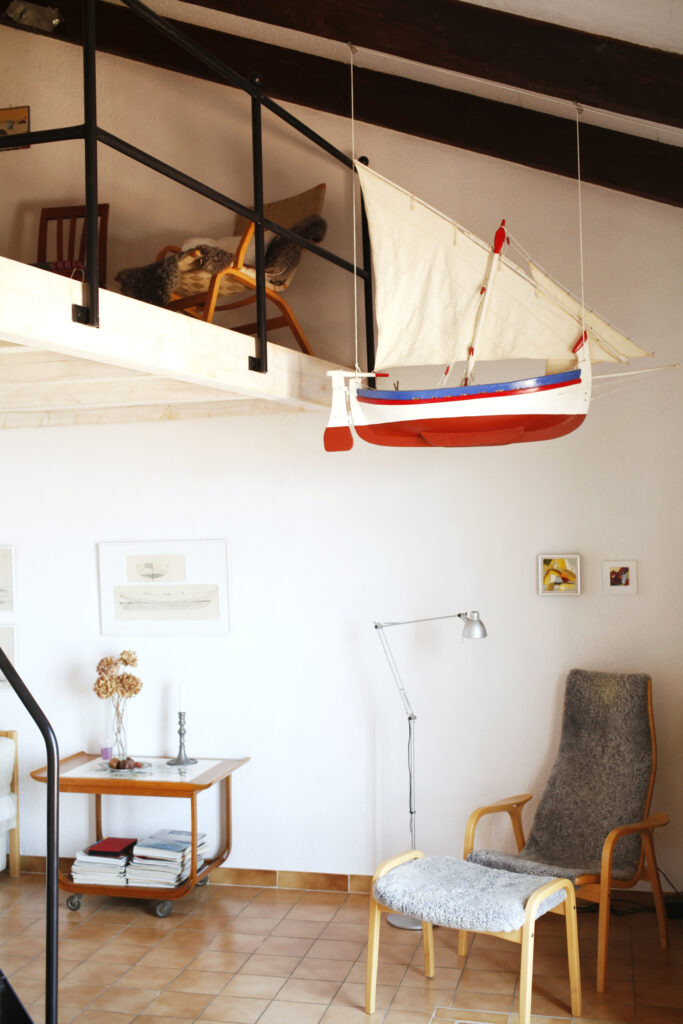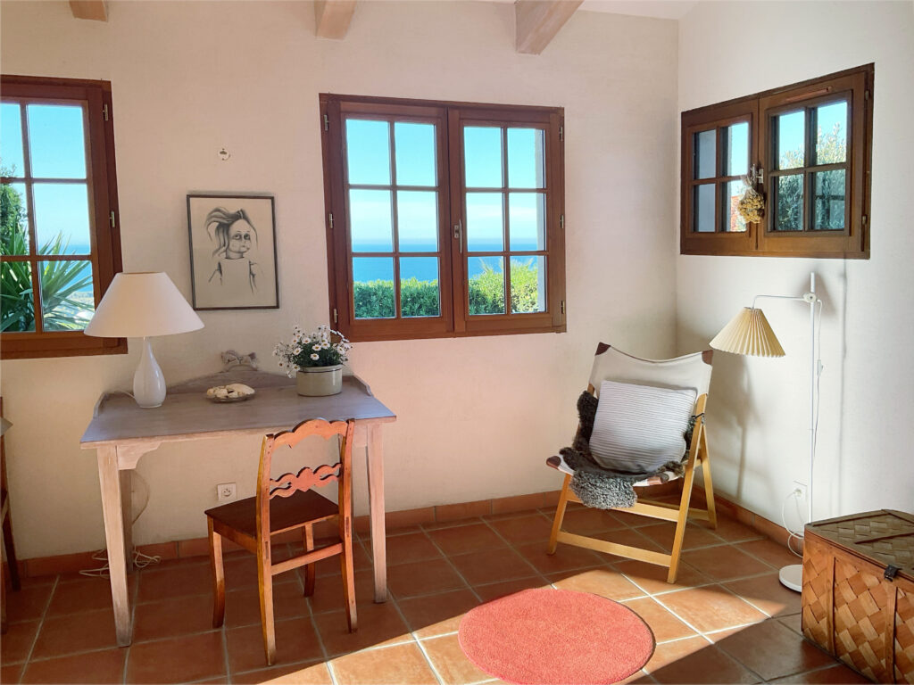 Bredvid vardagsrummet där du har en effektiv vedkamin och tre dörrar ut till terrasserna finns ett arbetsrum med loft.