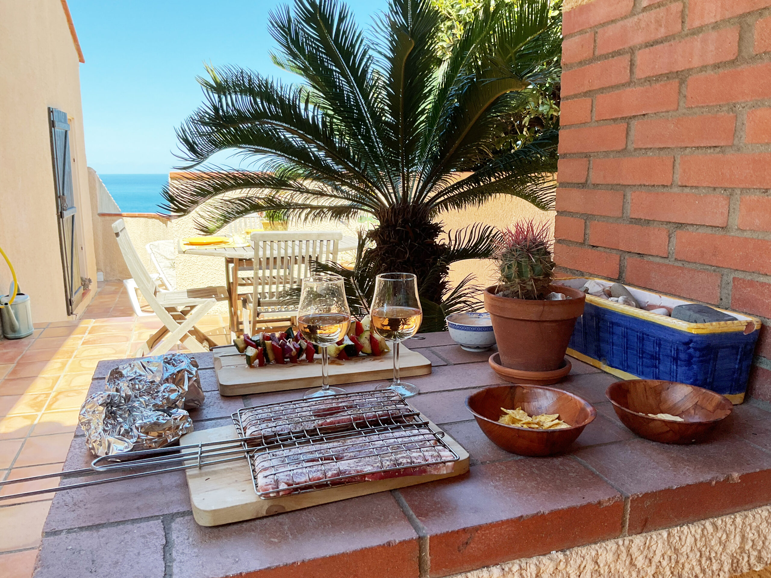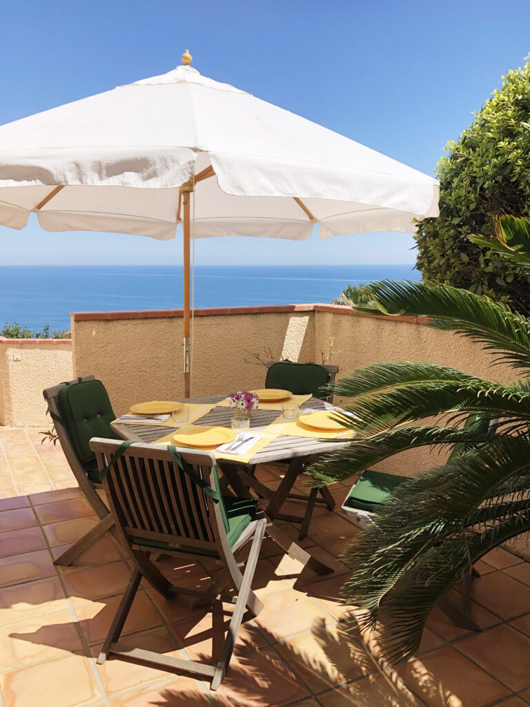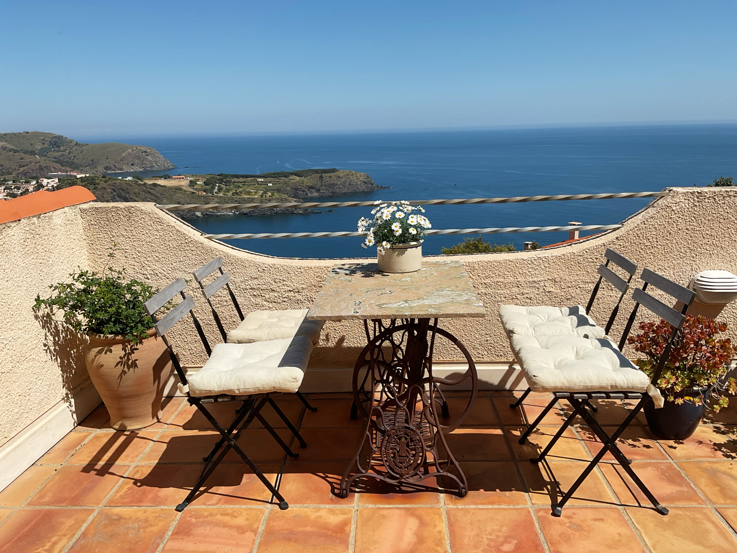 Hus med unikt läge, terrasser på tre sidor och fantastisk havsutsikt, i byn Cerbère vid Medelhavet, nära den spanska gränsen.