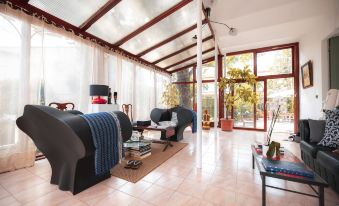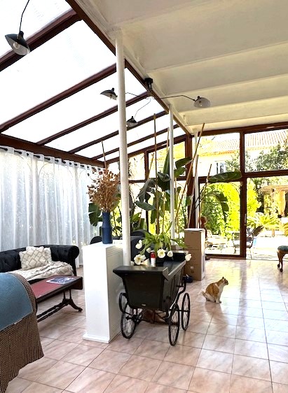 På bottenvåningen möts du av en stor glasveranda/orangeri på 42 kvm, med dörrar direkt ut till den lummiga trädgården och till det fullt utrustade köket på 32 kvm. Här kan du duka upp för stora middagar, eller bara njuta av morgonkaffet i solskenet.